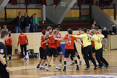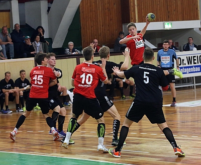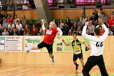 Von Beginn an gestaltete sich die Partie sehr offen. Der Gastgeber war gut auf die Clubjungen eingestellt und legte mit 1:0 vor. Robin Danneberg glich durch Siebenmeter aus. So entwickelte sich ein packender Schlagabtausch in den ersten Minuten. Beim 4:5 durch Jens Osterloh und dem 4:6 durch Philipp Gehlert führte der SCM in der 8. Minute erstmals mit 2 Toren. Doch dies gab keine Sicherheit im Magdeburger Spiel. Vor 220 begeisterten Zuschauer kämpfte sich der Gastgeber wieder ran und ging selbst in Führung. Schrecksekunde dann in der 13. Minute. Spielmacher Oskar Schöll kam beim erfolgreichen Torabschluss unglücklich auf und musste verletzt von der Platte. Felix Eckert musste wieder umstellen und das merkte man dem Magdeburger Spiel auch an. Dennoch gelang es dem SCM durch gute Aktionen zum Torerfolg zu gelangen. Doch die Löcher in der Magdeburger Abwehr lud den Gastgeber ebenfalls zu Torerfolgen ein. Die Partie blieb zum Halbzeitpfiff eng. Keine Mannschaft konnte sich absetzen. Halbzeitstand 17:16 aus Magdeburger Sicht.